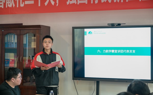 活动第六项,力航学霸宣讲团代表谭英泽进行了发言。谭英泽同学从认真听课、劳逸结合、找好节奏等方面向在场的同学们介绍了自己的学习经验。