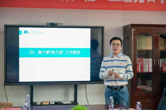 党委副书记孔祥彬介绍了第六期努力班规划。孔书记首先从往期的退学经历引入,结合自己和学生交流情况,从指导思想、组织架构、评选标准、保障措施这四个方面详细介绍了第六期努力班的规划。