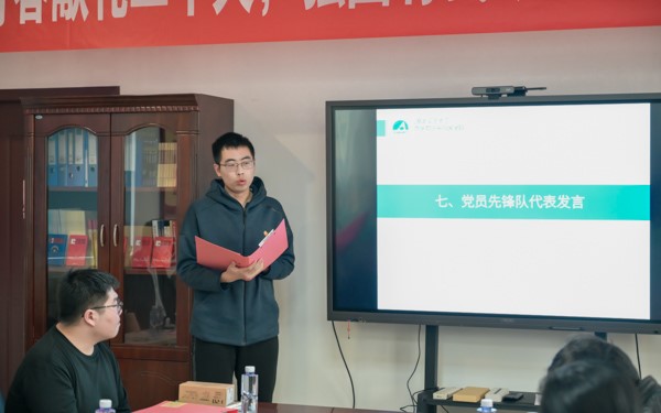 活动第七项,党员先锋队代表曹子梁进行了表态发言,他分享了3年来自己以“学霸团”的身份参加努力班的感受,同时也代表支部党员们表明了服务广大同学的信心与决心。