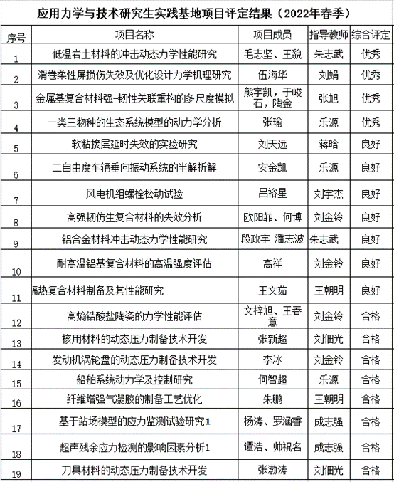 2023年3月29日,由应用力学与结构安全四川省重点实验室组织,由范晨光、刘娟和罗会亮老师组成评审组,我院应用力学与技术研究生实践基地2022年度春季项目结题答辩顺利举行。