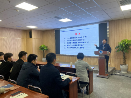首先,张学龙为同学们推荐了《矛盾论》、《实践论》、《博弈论》和《熵增理论》四本书,并阐述了“四论”的主要内容,借此引出了“清廉人生路,迈好第一步”的主题。