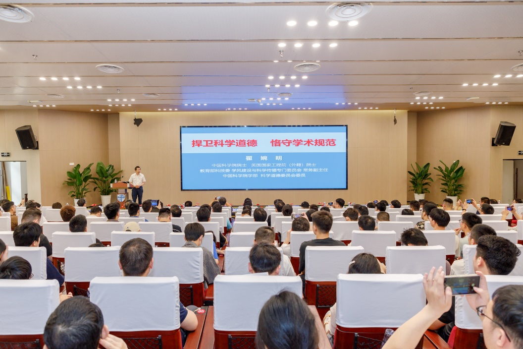翟婉明院士也回顾了自己的学习生涯,他表示:学生阶段学好力学非常重要,孙训方先生的《材料力学》和黄安基先生的《理论力学》让自己在从事轨道交通动力学研究方面有了非常好的基础。然后,翟院士进行了题为《捍卫科学道德,恪守学术规范》的报告,从什么是科学道德与学术规范出发,介绍了我国对科学道德与学术规范的重视,并结合国内外违背科学道德和学术不端的一些典型案例,介绍了如何界定学术不端和恪守学术规范的要点。最后他强调,学术诚信是社会发展与科技进步的“奠基石”,捍卫科学道德是进入科学殿堂的“护身符”,恪守学术规范是攀登学术高峰的“安全绳”。