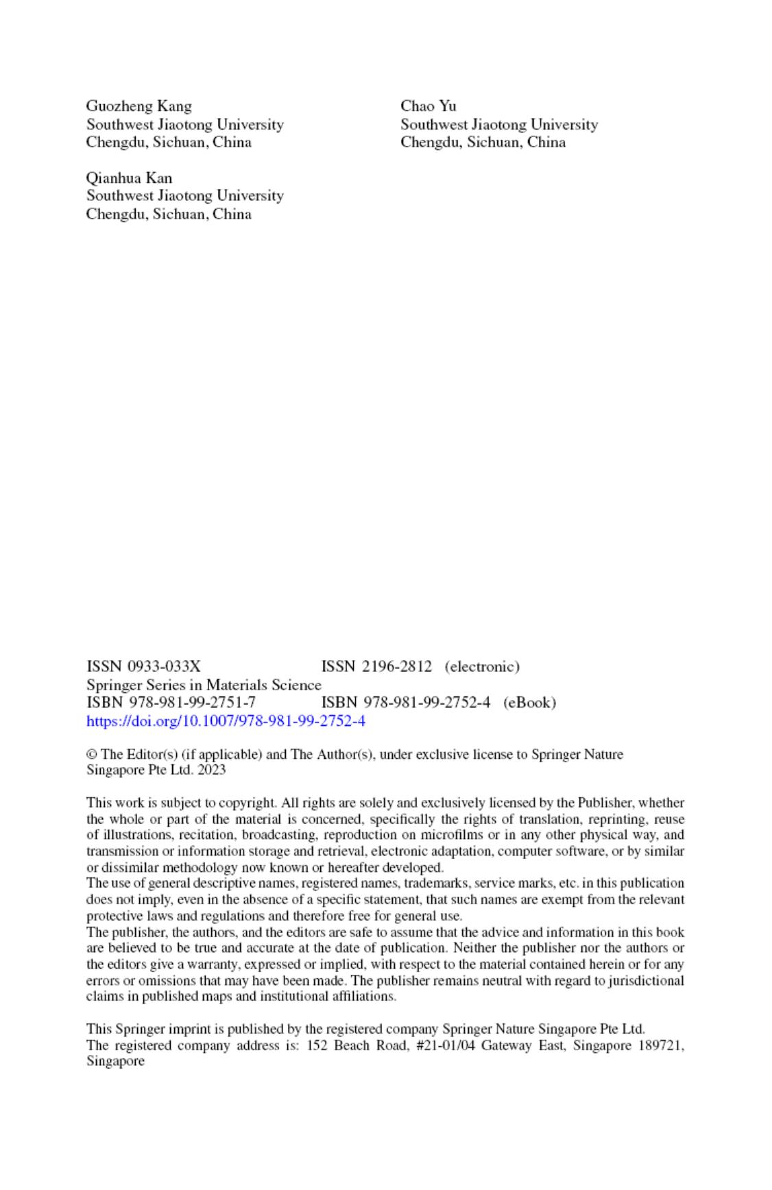 康国政教授、于超教授和阚前华教授受邀由Springer出版集团出版了英文专著“Thermo-Mechanically Coupled Cyclic Deformation and Fatigue Failure of NiTi Shape Memory Alloys:Experiments, Simulations and Theories”,分七个章节,共306页(ISBN: 978-981-99-2752-4)。