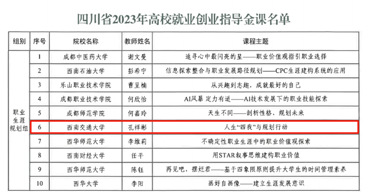 近日,由四川省教育厅、四川省人社厅主办的四川省2023年高校就业创业指导金课评选活动圆满收官,澳门六合彩开奖记录-澳门六合彩开彩结果
