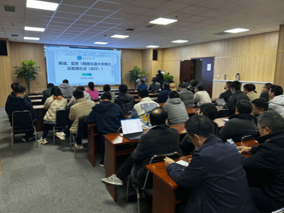 会议上,学院教师服务办公室闫桂玲老师宣传解读了《西南交通大学博士后管理办法》。李翔宇院长进行了进一步解读,并希望老师们积极宣传学校政策,大力引进海内外优秀博士毕业生从事博士后研究工作,为学院延揽人才。