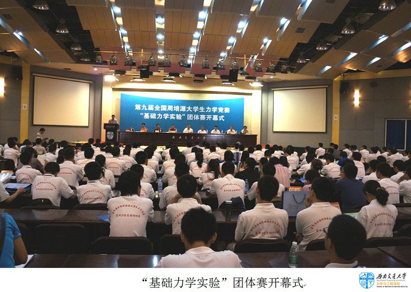 全国周培源大学生力学竞赛是经教育部批准,高等学校力学教学指导委员会与中国力学学会、周培源基金会共同主办的全国性大学生赛事,竞赛自1988开始每两年一届。自第九届(本届)竞赛开始“基础力学实验”团体赛首次纳入该赛事,有全国近200所高校17000余名学生参加个人赛,个人赛排名前30名的高校方可组队参加本次团体赛。本次“基础力学实验”团体赛由中国力学学会教育工作委员会和西南交通大学承办。