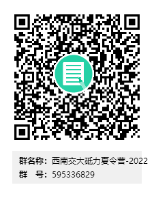 QQ群:“西南交大力航夏令营-2022”群号595336829,加群通过“学校-学号-姓名”进行验证。