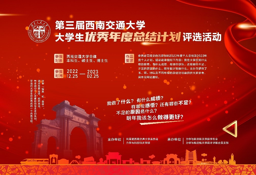 本研联合党支部承办的第三届西南交通大学大学生优秀年度总结计划评选活动成功举行。