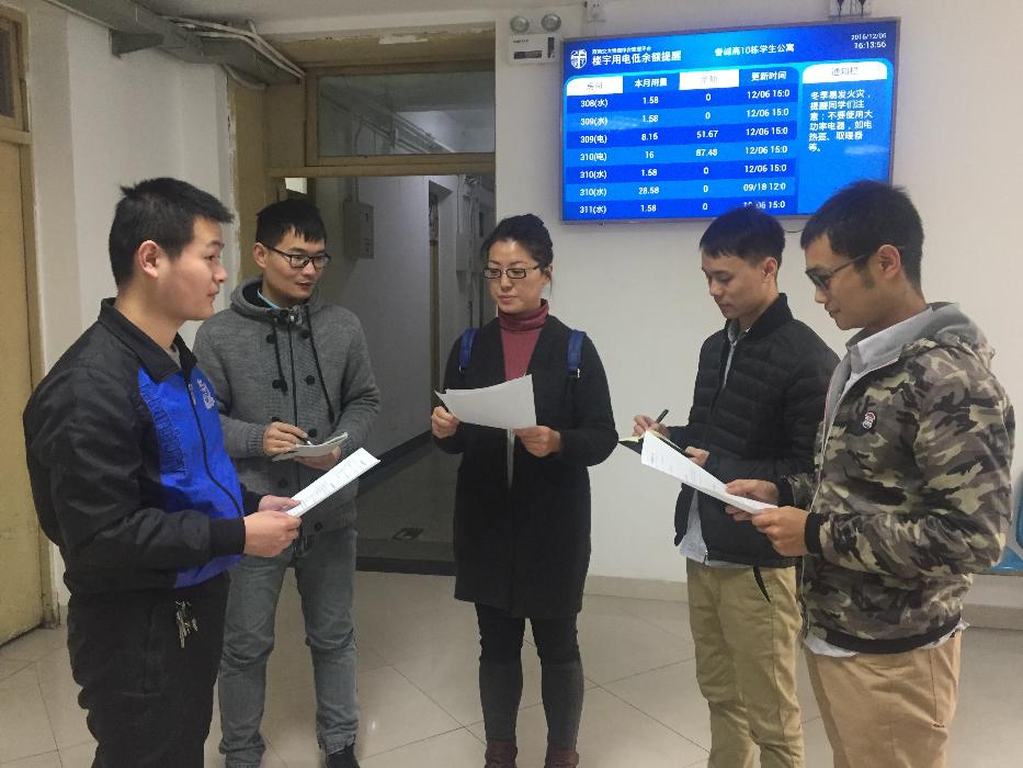 11月下旬,学院领导对学院团队和老师的工作室进行了安全专项检查,重点是防火防盗、安全用电、宿舍卫生、禁止吸烟等情况,学院领导对存在安全隐患的工作室作出指示,提出整改要求;对不符合用电要求的电器设备予以没收,作出口头警告。126日中午,研究生辅导员刘青老师带领研会人员对学院全体硕士和博士寝室进行安全检查。检查中发现,绝大多数学生都能够自觉遵守学校和学院的有关规定,没有使用违章电器的情况,但个别宿舍存在比如插线板乱放、使用功率较大的电热锅和电吹风等安全隐患,整体卫生状况较差、防盗意识较薄弱的问题。针对这些问题,刘青老师对同学们进行了安全教育,提醒学生进一步增强安全防范意识,自觉做好防火防盗、安全用电工作,防患于未然。加强自我管理,相互监督,积极维护公共环境的卫生,为大家营造舒适的工作和生活环境。