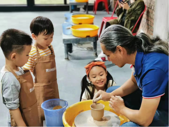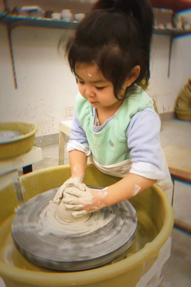由家长与小朋友一起进行拉坯制作体验。 另有茶歇处供家长休息。 |