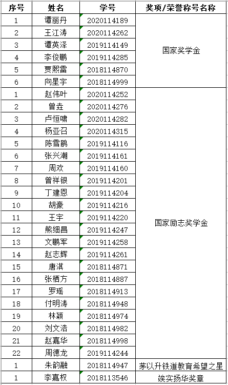 根据《西南交通大学本科生奖助学金评审管理办法》、《西南交通大学本科生国家奖助学金评审管理办法》和学校《关于开展2020-2021学年国家奖学金和国家励志奖学金评选工作的通知》、《关于组织开展2020-2021学年本科生学年总结鉴定、荣誉称号评选工作的通知》、《关于开展2021年度茅以升系列奖学金评选工作的通知》安排,经学生本人申请、学工组审核、学院学生奖励评审小组集体讨论研究决定,拟推荐以下人选为国家奖学金、国家励志奖学金、竢实扬华奖章、茅以升铁道教育希望之星的候选人。