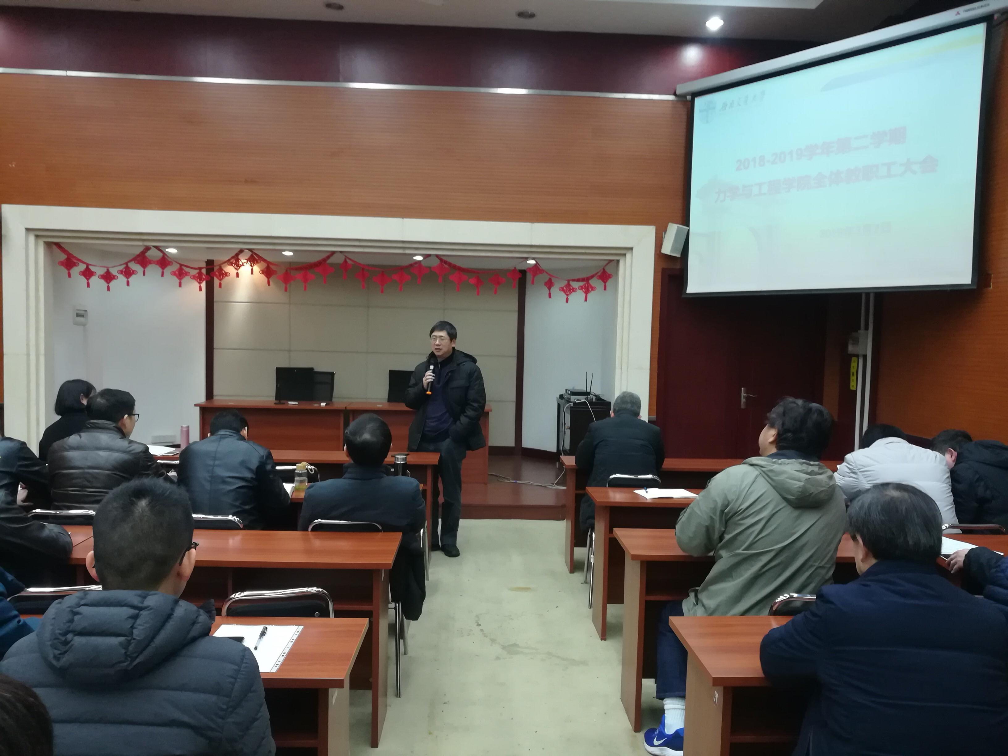 康国政院长也指出,全体教职工要按照学校要求和部署,进一步加强政治理论学习。接下来,康院长就落实学院“双一流”建设工作、力学基地班建设方案以及教职工关心的学院2018年考核及年终分配情况进行了通报及说明,并衷心感谢全体教职工的努力和支持。