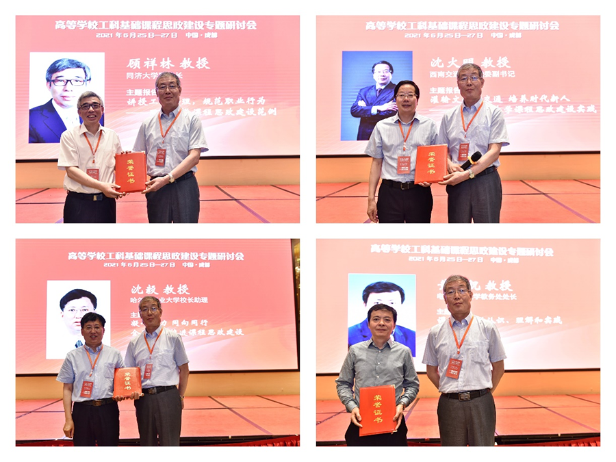 迎建党百年华诞,守立德树人初心。为贯彻落实教育部《高等学校课程思政建设指导纲要》和教育部课程思政建设推进工作会精神,充分挖掘各类课程思想政治教育资源,探索课程思政有效路径,全面发挥工科基础课程的育人作用,提高人才培养质量,2021年6月25日-27日,“高等学校工科基础课程思政建设专题研讨会”在成都举行。本次会议由教育部高等学校工科基础课程教学指导委员会指导,教育部高等学校力学基础课程、机械基础课程、电工电子基础课程和工程图学课程等4个教学指导分委员会和西南交通大学、高等教育出版社、四川省高等教育学会共同主办,西南交通大学教务处、澳门六合彩开奖记录-澳门六合彩开彩结果 和四川省公共基础课程教学指导委员会承办。同济大学、哈尔滨工业大学、河海大学、上海大学等教育部课程思政教学研究示范中心负责人,西南交通大学、上海交通大学、北京工业大学等高校的教育部课程思政示范课程教学团队专家,国家级教学名师、国家级一流课程负责人、教育部高等学校工科基础课程教学指导委员会及各教学指导分委员会委员,与来自全国100多所高校的200余名代表参加了会议。