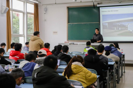 刘牧远老师本科就读于吉林大学车辆工程专业,硕士和博士均毕业于德国达姆施塔特工业大学机械工程专业。讲座中,刘牧远老师首先为同学们分享了他在德国达姆施塔特工业大学的求学经历、部分研究内容以及他硕士研究生期间在戴姆勒乌尔姆研究与开发中心的实习经历。