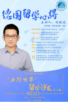 1126日,“力行世界”留学沙龙第六期在X2323举行,本次讲座特邀刘牧远老师为同学们讲述德国留学心得。