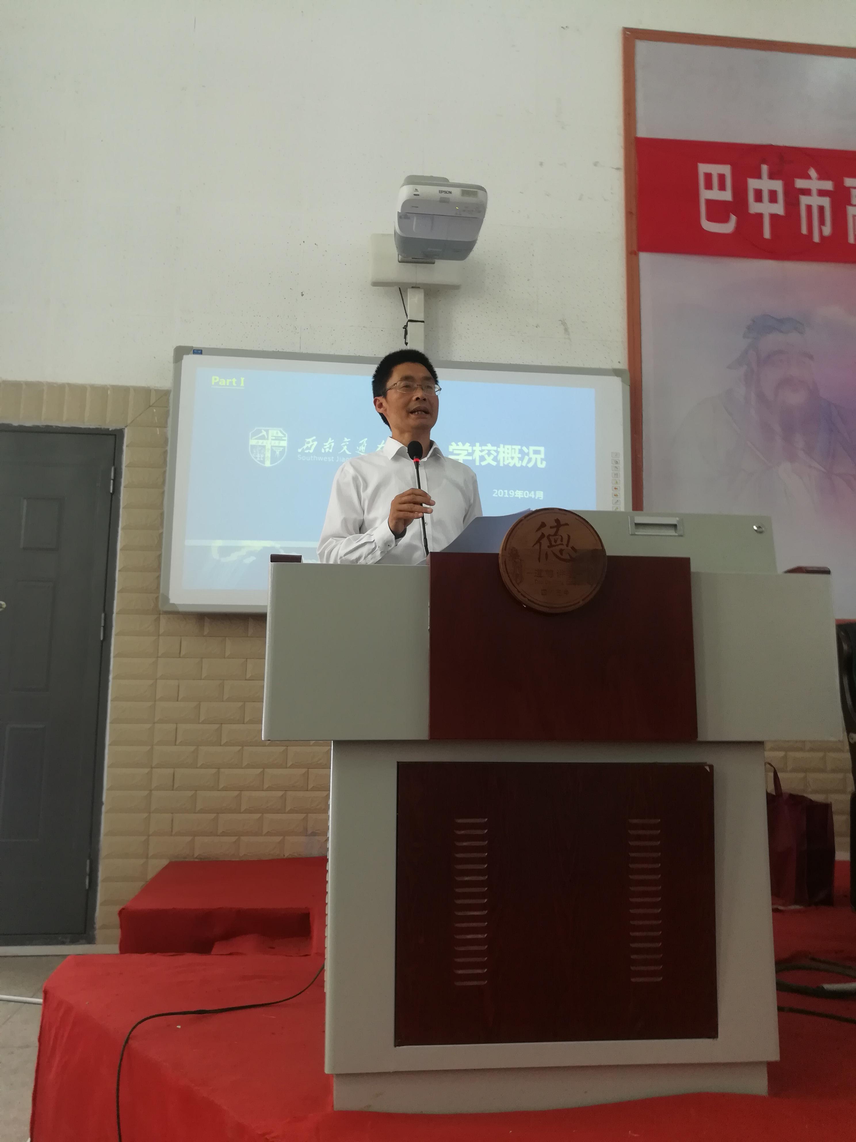 4月11日下午14:30到16:30,宣讲会首先在巴中中学龙湖校区报告厅进行。首先巴中中学王成文副校长介绍了宣讲团一行,阚前华教授代表学校对巴中中学对招生宣传的支持表示感谢,向巴中中学和高三同学赠送了展示西南交通大学轨道交通特色的纪念品,以此鼓励高三学子在高考中取得理想的成绩。招生宣讲主要针对巴中中学精英班学生,阚前华教授详细介绍了西南交通大学以及澳门六合彩开奖记录-澳门六合彩开彩结果
