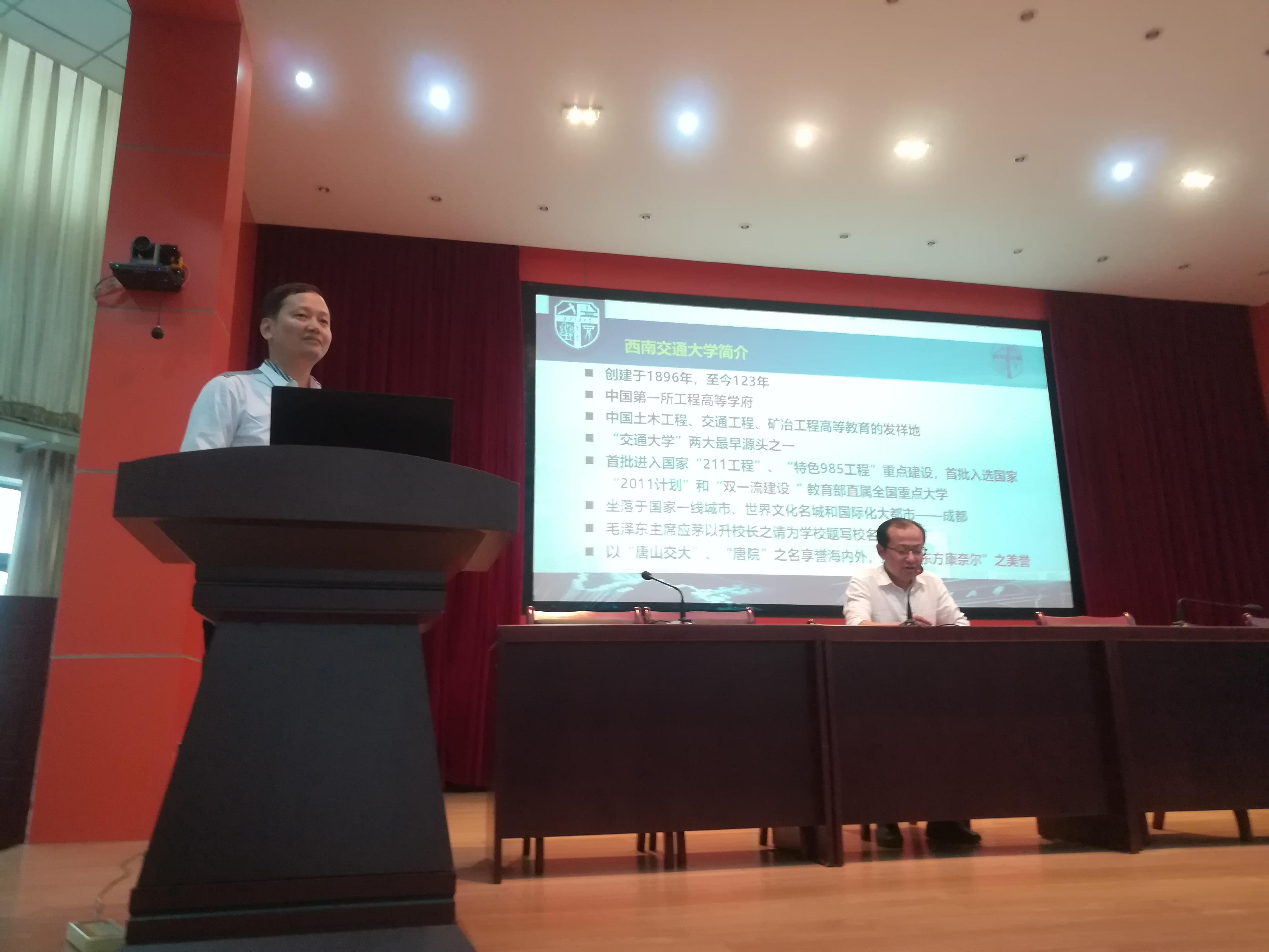 4月12日上午8:30到10:30,在南江中学王波副校长的带领下,宣讲团一行参观了七一校区校园和实践基地。宣讲会在学生会堂举行,由南江中学教学名师荣刚主持。阚前华教授代表学校对南江中学对招生宣传的支持表示感谢,向南江中学和高三同学赠送了纪念品。招生宣讲开始,阚前华教授向高三年级的优秀学子详细介绍了西南交通大学以及澳门六合彩开奖记录-澳门六合彩开彩结果