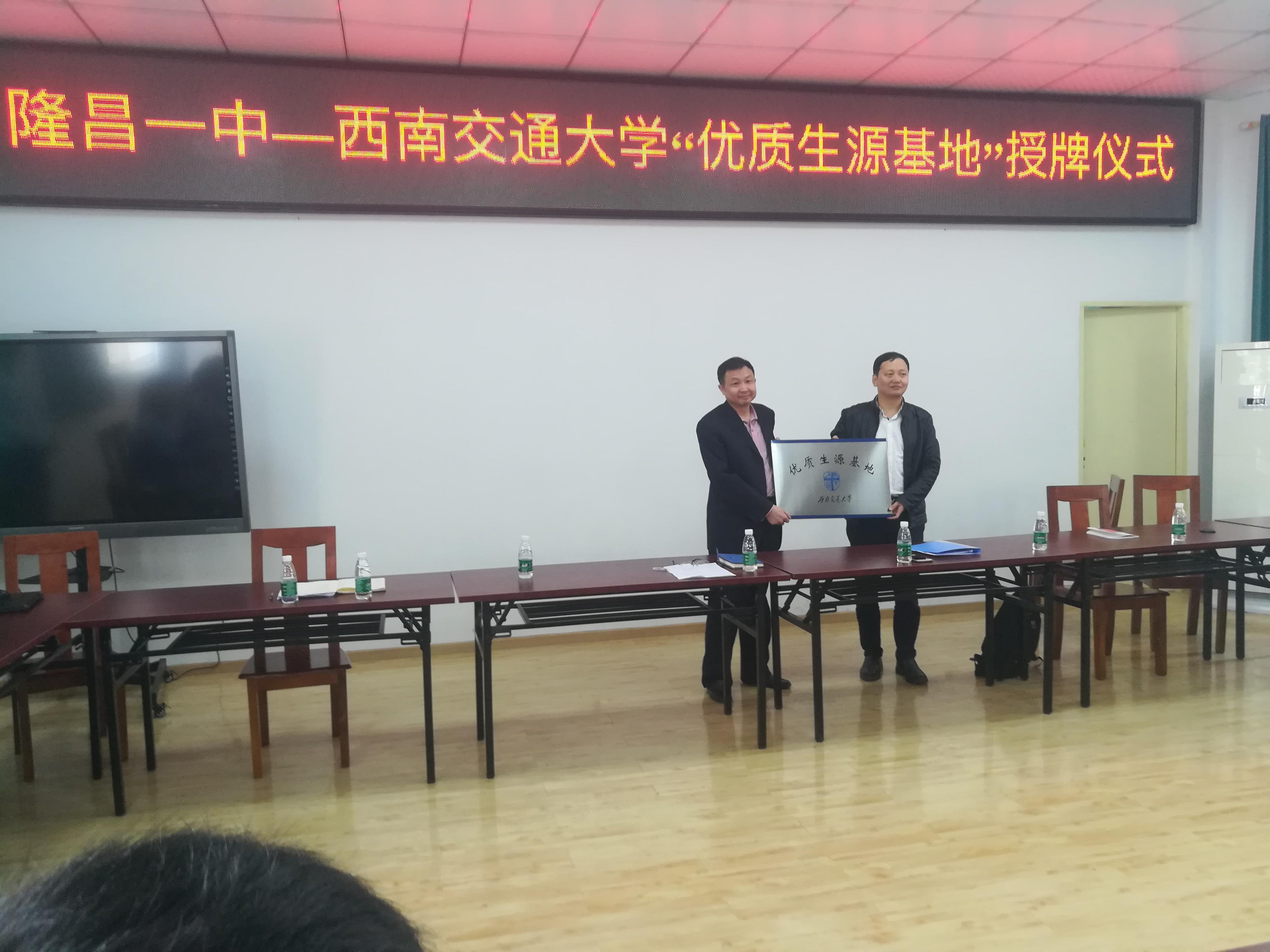4月13日上午9:30到11:30,宣讲团一行来到隆昌一中,受到了隆昌一中舒平校长等人的热情接待。随后,在舒平校长的主持下,双方举行了“西南交通大学优质生源基地”的授牌仪式。在隆昌一中高三优秀学子的见证下,阚前华教授代表学校向隆昌一中授予了“西南交通大学优质生源基地”的荣誉牌,舒平校长对西南交大对隆昌一中的肯定表示感谢,并表示希望能够向西南交大输送更多的优秀学子。授牌仪式结束后,苗鸿臣副教授向高三年级的优秀学子详细介绍了西南交通大学以及澳门六合彩开奖记录-澳门六合彩开彩结果