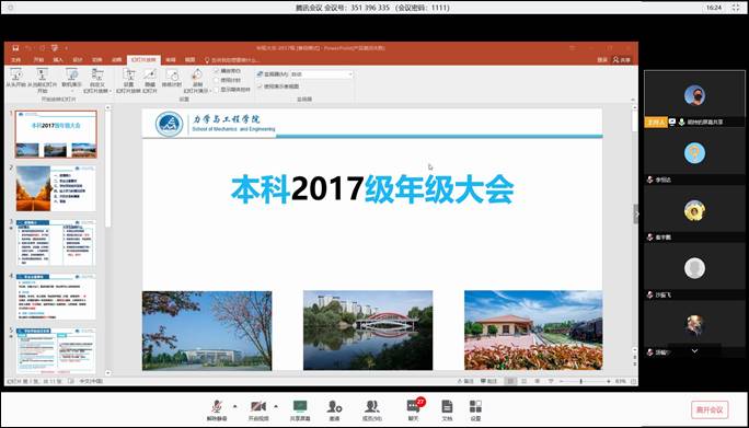 为做好近期各项重点工作,37- 9日,力学学院2016201720182019级分别在线召开了本学期第一次年级大会。会议由各级辅导员主持,学院党委副书记孔祥彬及各年级同学参加了本次会议。