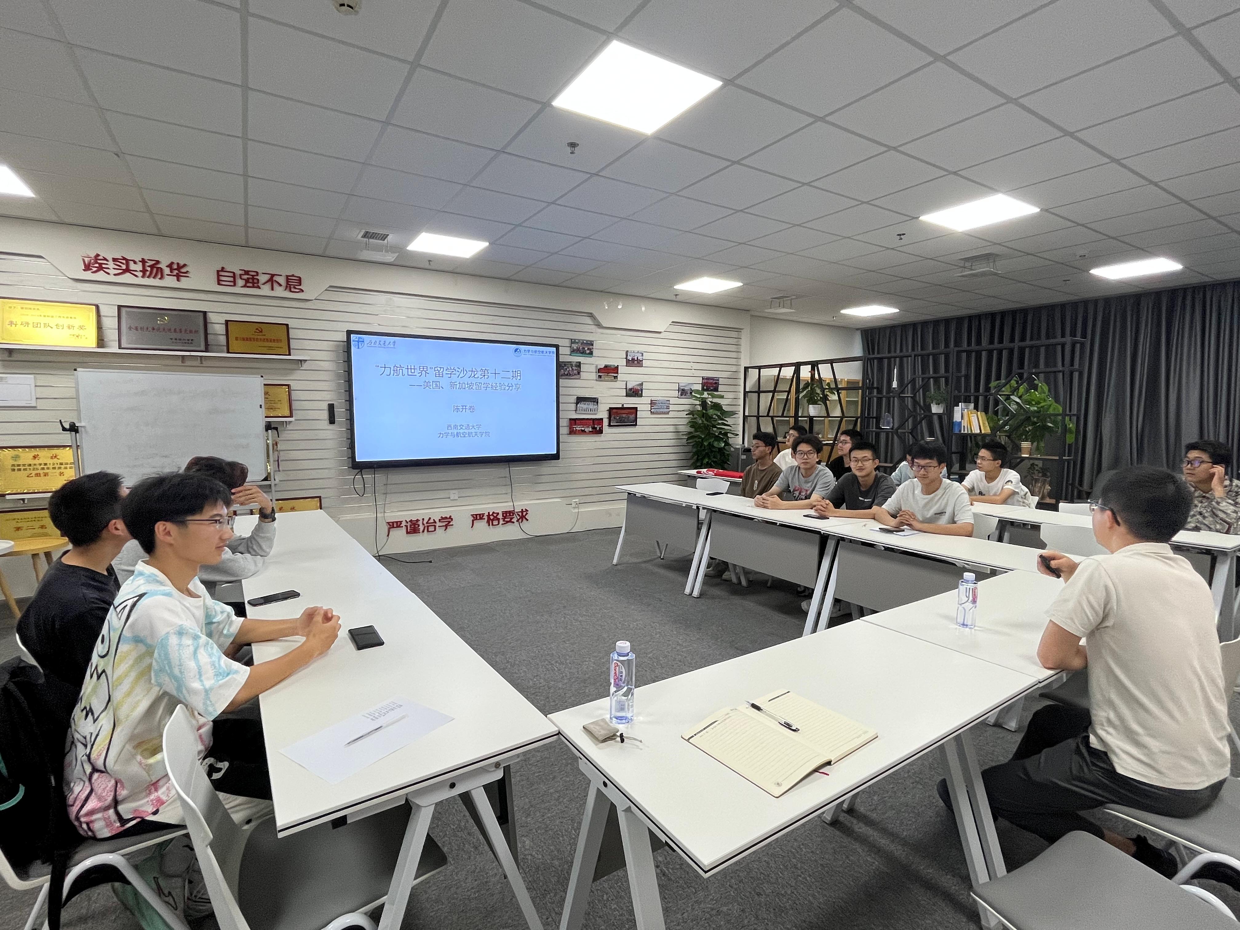 “青年讲师团”成员陈开卷老师为同学们分享他在美国佐治亚理工学院和新加坡南洋理工大学的留学经历。辅导员安晟斐及学院10余名同学参加本次活动。