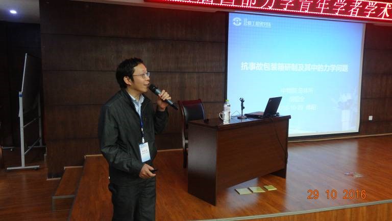 彭先觉院士作的题为“Z-箍缩驱动聚变裂变混合堆与工程力学问题”的报告,西北工业大学李玉龙教授作的题为“复合材料胶接结构的力学行为-实验研究及数值模拟”的报告,和中国工程物理研究院总体工程研究所胡绍全研究员作的题为“抗事故包装箱研制及其中的力学问题”的报告。