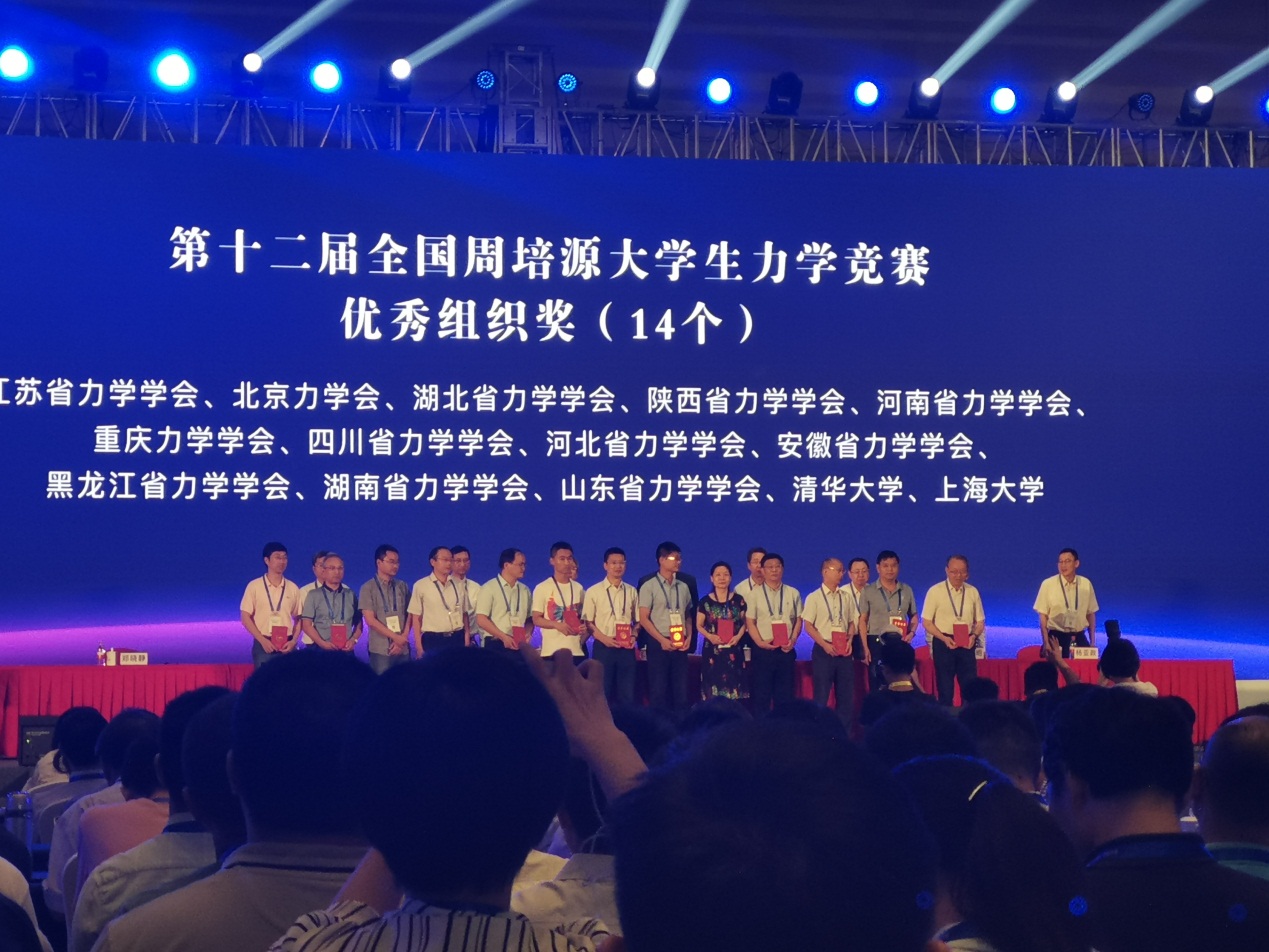 大会首先进行了全国周培源大学生力学竞赛颁奖仪式,四川省力学学会荣获优秀组织奖,四川省力学学会秘书长蒋晗教授代表四川省力学学会上台领奖。