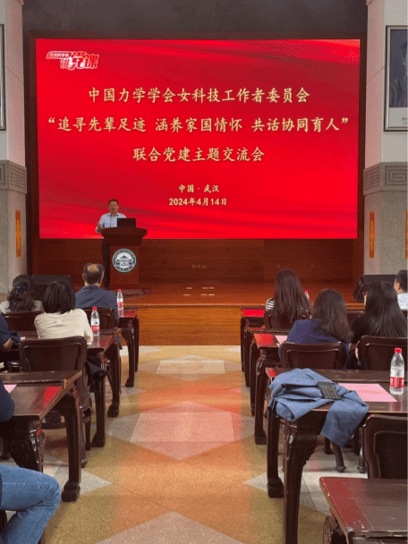 2024年4月14日,中国力学学会女科技工作者委员会在武汉开展联合党建活动。来自国家自然科学基金委员会以及北京大学、武汉大学、华中科技大学、天津大学、同济大学、西北工业大学和湖南大学等多所知名高校的专家和代表受邀参加此次活动。我院受邀嘉宾包括阚前华教授、郭建威副教授、刘娟副教授和李燕副教授。