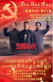 今年是中国共产党成立100周年为深入学习贯彻习近平总书记在党史学习教育动员大会上的重要讲话精神,根据学校党委《关于开展党史学习教育的实施方案》部署,力学学院党委组织开展了庆祝中国共产党成立100周年观影研讨系列活动,引领力学学子“学史明理、学史增信、学史崇德、学史力行”。