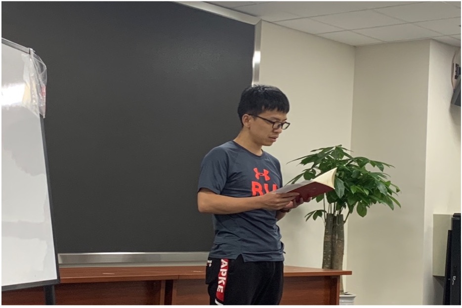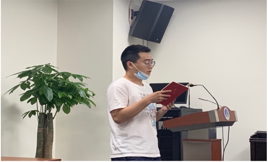 图2 研究生第二党支部程一晋朗读党史