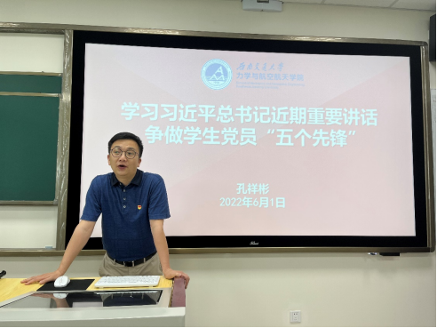 孔老师以习近平总书记对青年“人生万事须自为,跬步江山即辽阔”、“增强做中国人的志气、骨气、底气”、“做堪当民族复兴重任的时代新人”、“争做德智体美劳全面发展的社会主义建设者和接班人”、“立大志 明大德 成大才 担大任”五句寄语为主题,与在座党员一起学习了习近平总书记近期的重要讲话内容。