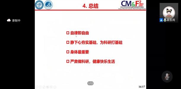 首先,2020级博士生梁志鸿围绕“只要认真做好一篇论文就会收获很多”的主题,依次从个人经历、综合表现、科学研究和取得成果四个方面分享了自身多年以来的科研经验,告诫大家研究生一年级需要静下心夯实基础,认真学习专业课程,保持自律,为科研打下基础。