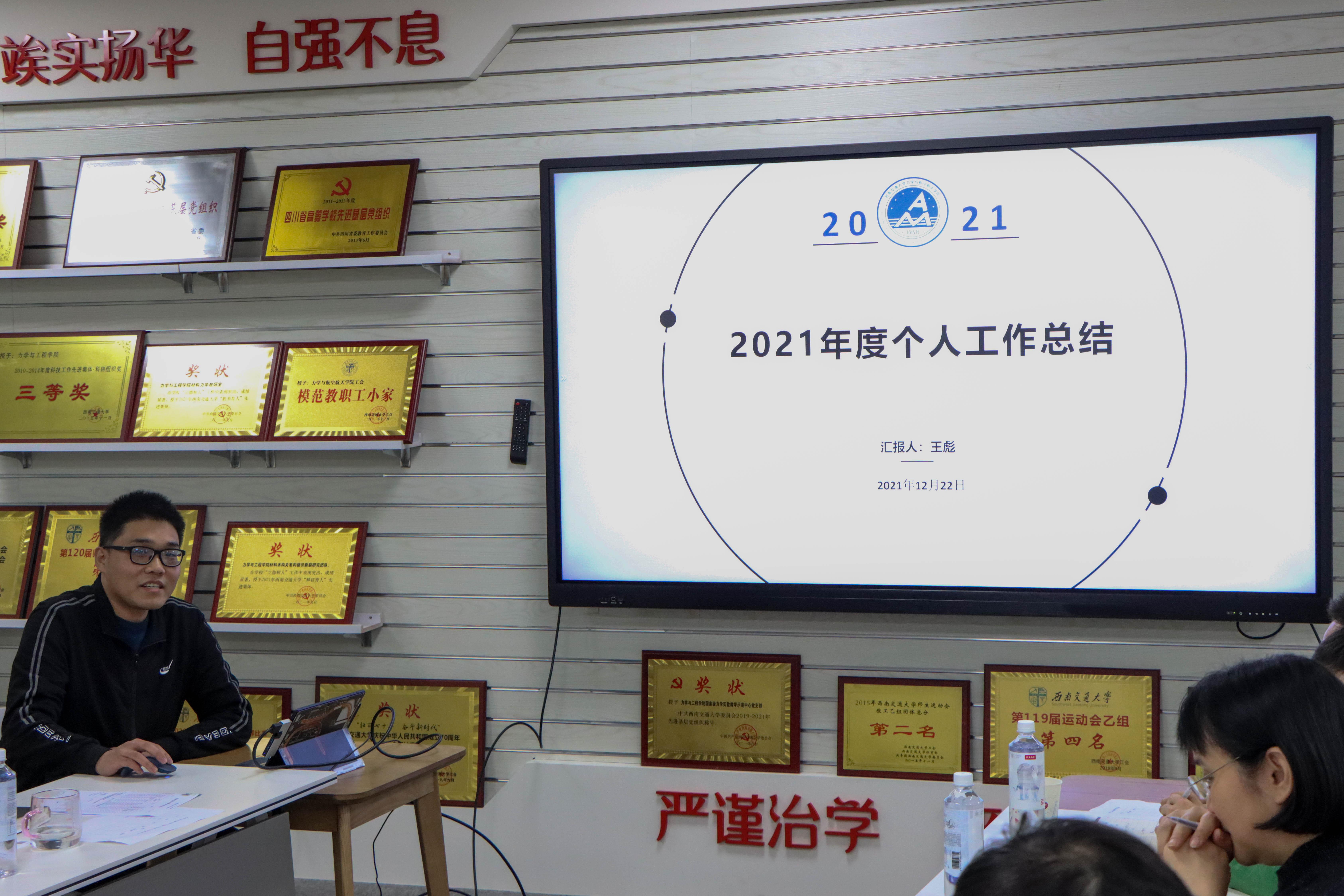 会上,各年级辅导员就2021年工作进行了年终述职:杨婧主要汇报了2019级本科生管理工作、学院学生工作、学院团委工作等;张容华汇报了学生思想理论教育、学生日常事务管理、学生学风建设工作、学生党建工作以及学生就业工作等;周子涵汇报了2020级本科生管理工作、疫情防控、科创竞赛、班风学风、社会实践、学生资助以及学院宣传等工作;王彪汇报了2021级新生、本科党建工作以及学院学风建设等专项工作;于红琴汇报了研究生辅导员工作和研究生会指导工作等;田甜汇报了2018级学生工作、团委工作以及学院宣传等其他专项工作。