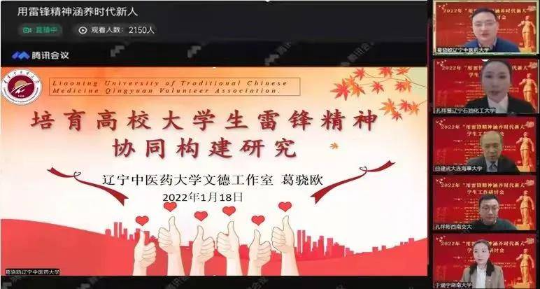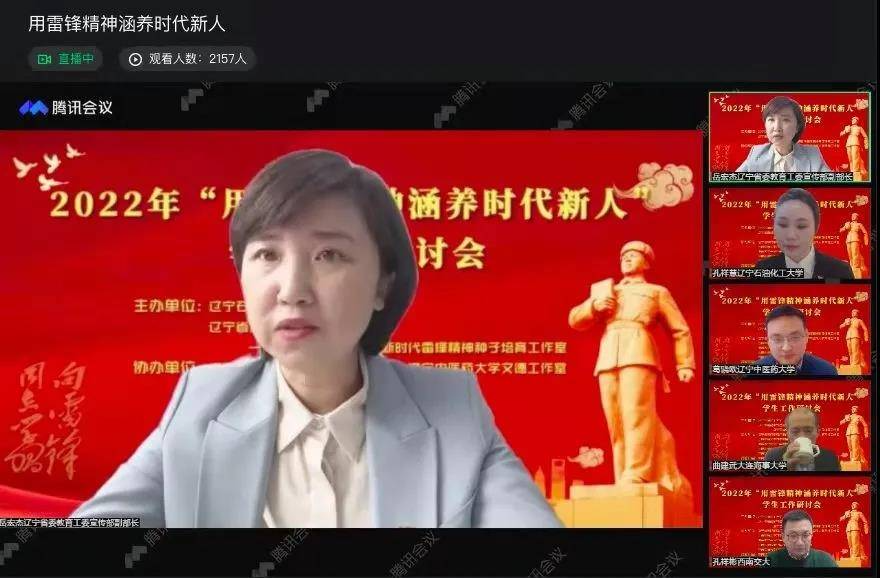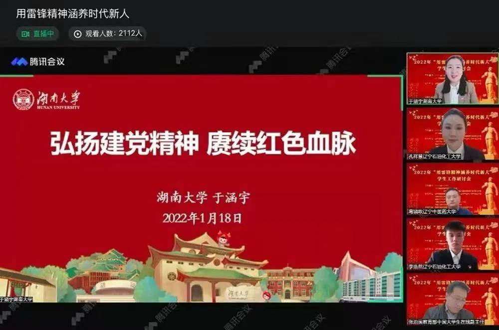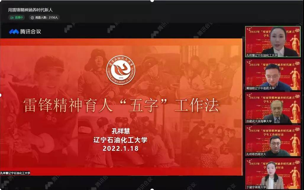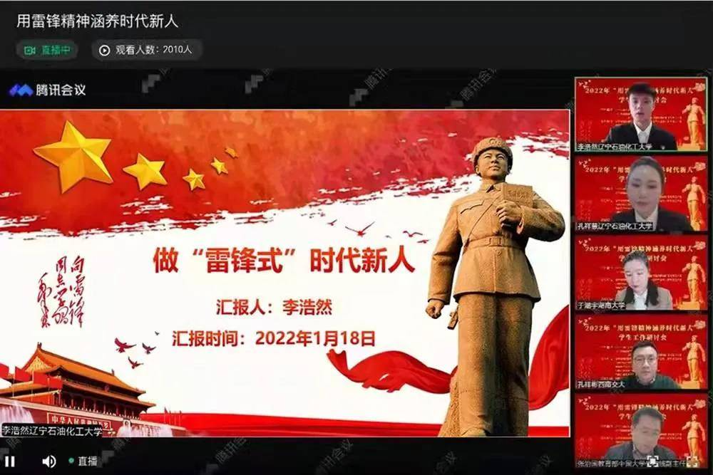 等单位协办的2022年“用雷锋精神涵养时代新人”学生工作研讨会在线上成功举办。来自全国百所学校的思想政治工作者、辅导员及学生,共计2200余人参加本次研讨会,会议由辽宁石油化工大学石油天然气工程学院党委副书记、新时代雷锋精神种子培育工作室负责人孔祥慧主持。