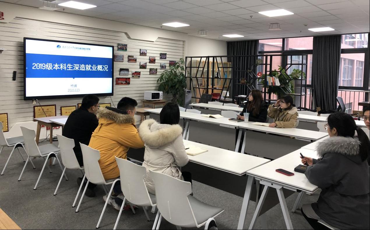 杨婧汇报了2019级本科生有关保研、考研、出国以及就业的统计情况,重点汇报了2022届毕业生深造率提升工作方案。此外,通过分析2021年学院学生工作考核成绩,杨婧就成绩较低的几项工作,提出了新的工作方案,要求老师们把基础工作做得更加扎实。