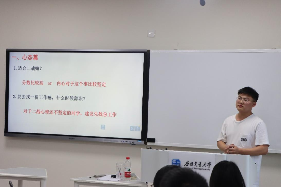 在三号教学楼30303进行了考研“二战”与就业规划工作坊,由西南交通大学招就处就业指导科科长陈曦轶和信息学院20级研究生、B站知名考研UP主张剑主讲,辅导员田甜老师主持,澳门六合彩开奖记录