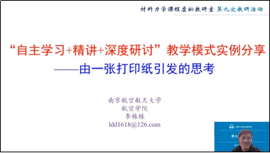 本次活动有幸邀请了南京航空航天大学航空学院彭瀚旻副教授、李栋栋老师、王单副教授做客材料力学课程虚拟教研室,分享其在教学过程中的宝贵经验,并做专题报告。