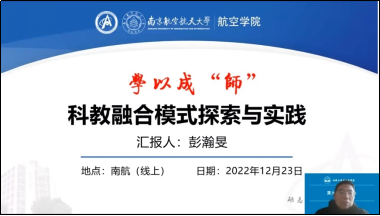 首先,彭瀚旻副教授做主题报告《学以成“师”的科教融合模式探索与实践》。针对总书记提出的高等教育为人民服务、为中国共产党治国理政服务、为巩固和发展中国特色社会主义制度服务和为改革开放和社会啊现代化建设服务的指导方针,彭瀚旻副教授为各位老师介绍了当前南航材料力学课程建设情况及科教融合的教学模式。