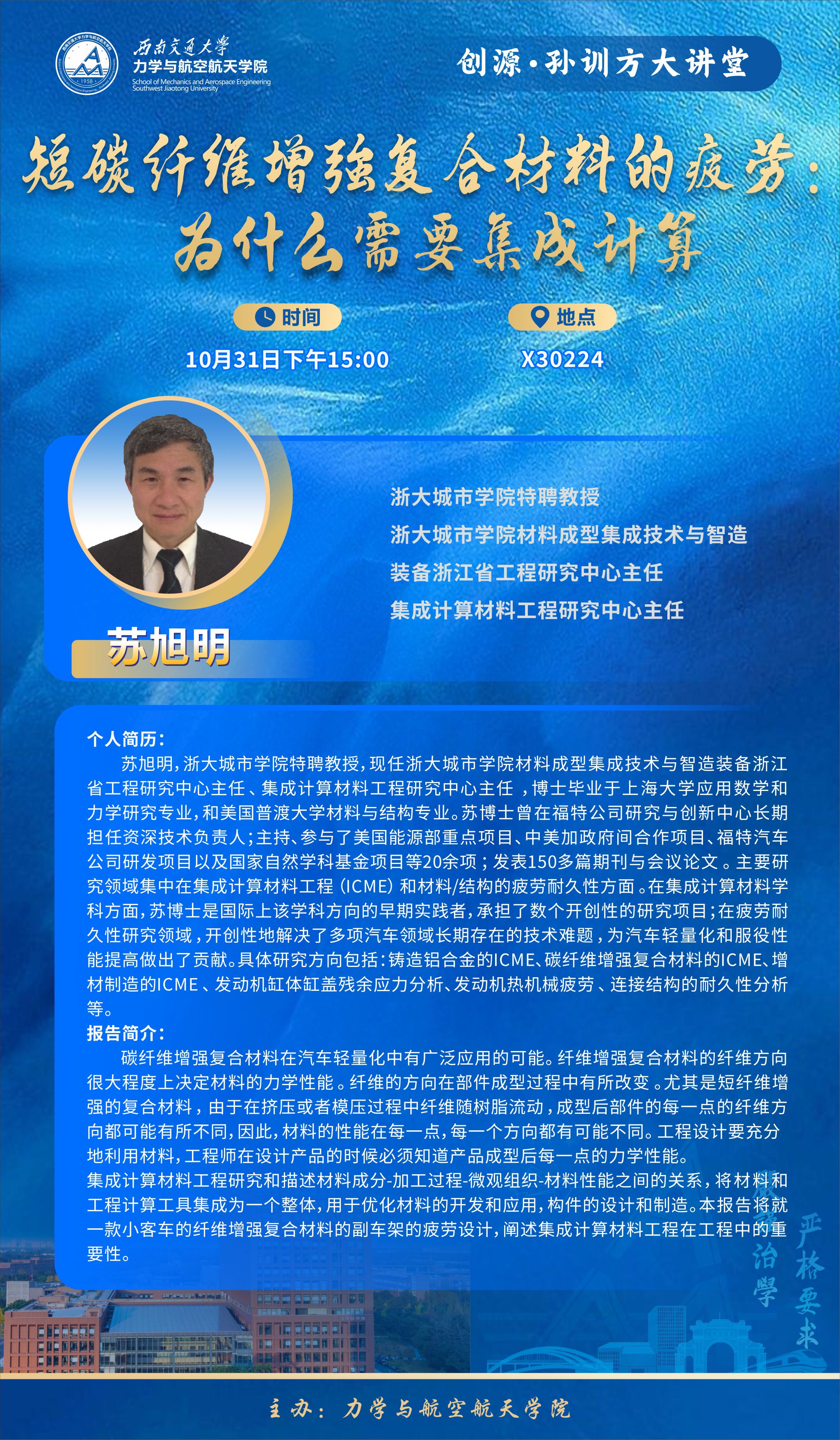 上一条:西南交通大学创源”大讲堂研究生学术讲座:仿昆虫结构低频隔振机理初步探索 下一条:创源大讲堂:质子交换膜燃料电池双极板流场设计策略及水热管理机制研究